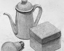 入会前は、ほとんどの生徒さんがデッサンの初心者であるので、立方体というシンプルな形体も観察して描けませんでした。